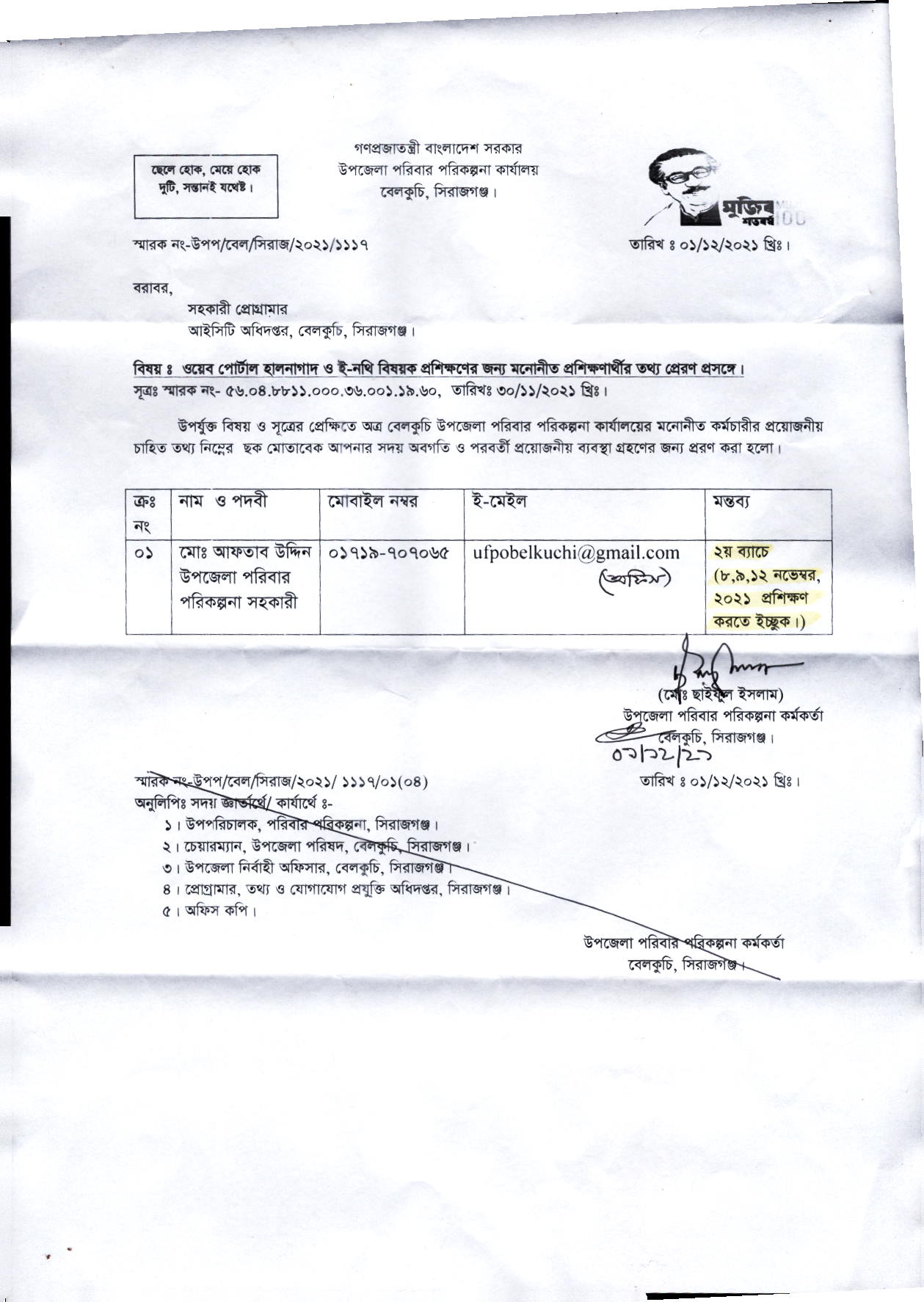 | উপজেলা সমবায় অফিস, সেনভাগ | উপজেলা সমবায় অফিসার | 200000062431 |